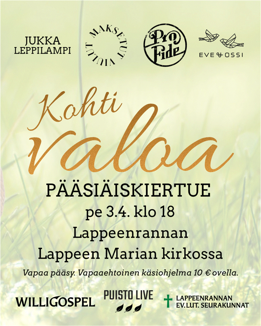 Tervetuloa WilliGospel-suurtapahtumaan, joka järjestetään sunnuntaina 9.8.2026 Lappeenrannan Linnoituksessa.